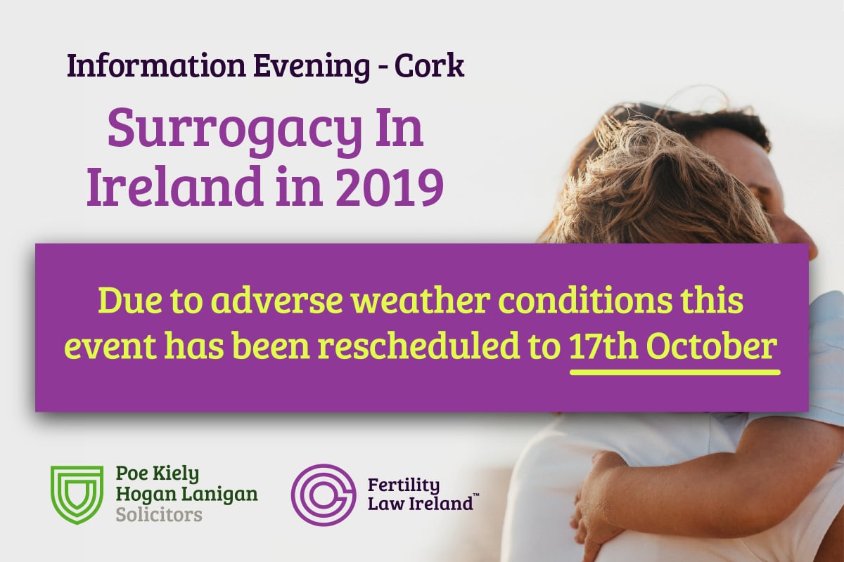 The Surrogacy & Fertility Law team at Poe Kiely Hogan Lanigan is pleased to announce that on Thursday, 17th October, the team will host an Information Evening in the Clayton Silver Springs Hotel in Cork at 6pm For Couples Considering Surrogacy As An Alternative Route To Parenthood.
